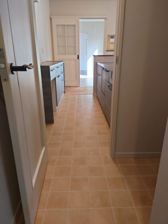 そのままキッチン横にも動線が繋がることで買い物動線も楽になります