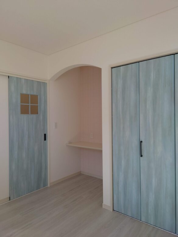 2階洋室はR形状の奥にデスクコーナーもあります