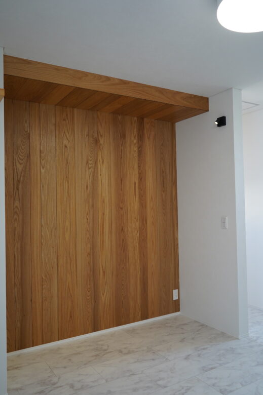 ウッドパネル部分にはデイベッドを配置してソファ空間に。